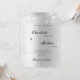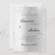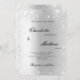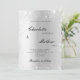 Um convite formal de casamento moderno, elegante e minimalista. Um fundo com aspecto fino de prata decorado com falso brilho. Personalize e adicione seus nomes e detalhes. Letras pretas coloridas. Os primeiros nomes são escritos com um moderno estilo escrito à mão.