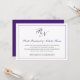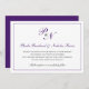 Convite de casamento horizontal tradicional e clássico com um simples design com seu monograma inicial e seus nomes em um dentro elegante de caligrafia roxa real de uma fronteira fina. A parte de trás é roxa sólida. Esta design clássica é perfeita para um casamento formal no outono/outono.