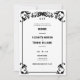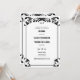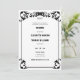 Um convite de casamento branco e preto no oeste do país, com uma elegante, sofisticada, mas simples e elegante moldura decorativa e letra ocidental. Romântico e cheio do charme ocidental do país, é uma escolha adorável para um casamento de celeiro, um casamento ao ar livre, um casamento de churrasco ou qualquer cenário rústico com um tema de casamento country Western, cowboy que também é formal e elegante.