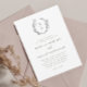 Um Convite de Casamento Formal Preto e Branco com Monograma Elegante com grinalda desenhada à mão e tipografia clássica. Clique no botão de edição para personalizar este design.