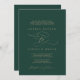 Esta caligrafia romântica verde floresce o convite formal para o casamento é perfeito para um simples casamento. O clássico design moderno apresenta espirais de rico e turbilhões brancos com elegantes e elegantes champanhes de ouro falso. Nota: Este design não apresenta folha de ouro real. É um gráfico de alta qualidade feito para se parecer com folhas de ouro.