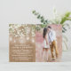 Convites de casamento country com luzes cintilantes apresentando um efeito de fundo de sacaria marrom rústico, foto do futuro sr. & sra., luzes de corda elegantes em jarra de mason, flores de bebê respiro, e um modelo de casamento que é fácil de personalizar.