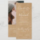 Um convite de casamento tudo em um com nomes em letra cursiva moderna e tipografia elegante em um fundo kraft rústico. O convite inclui um cartão de RSVP que pode ser destacado e sua foto especial no verso. Criado por Thisisnotme©