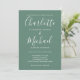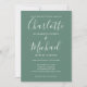 Com nomes de estilo característico, este convite de casamento elegante pode ser personalizado com suas informações em letras elegantes em um fundo verde eucalipto com a foto escolhida no verso. Você pode personalizar a cor do fundo para combinar com o tema do seu casamento. Criado por Thisisnotme©