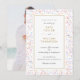 Seus detalhes especiais de convites para comemorações do casamento, colocados em na moda elegante tipografia moderna, se sentam em um painel dourado sobre um fundo colorido de confete arco-íris. O reverso apresenta sua própria foto especial ou deixa o vazio ou adiciona uma cor de fundo a seu favor. Projetado por Thisnotme©