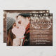 Um convite de casamento rústico com luzes bonito de cordas e uma delicada terra floral rústica desenhada à mão de folhagem botânica com tipografia de na moda, sobre um fundo de madeira rústica. Personalize com sua foto especial e informações do dia do casamento. Projetado por Thisnotme©