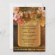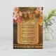 Um convite de casamento para o tema do vinho romântico, que inclui uvas e rosas coloridas de pêssego num barril de vinho de madeira rústica com fundo de ouro artístico estirado, com luzes festivas de cordas. No verso está sua própria foto, assim como um modelo de código QR fácil de personalizar (ou excluir).
