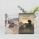 Este convite de casamento fotográfico apresenta um casal de silhueta numa motocicleta com um pôr do sol da montanha ou fundo do sol.