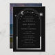 O Sol da Lua Negra Mística Stars Astronomy Foto Invisions apresenta o sol prateado, a lua e as estrelas com um quadro de ouro sobre um fundo negro. Dentro é a sua informação de convite de casamento. Personalize editando o texto nas caixas de texto e adicionando sua foto favorita. Projetado para você por ©Evco Studio www.zazzle.com/store/evcostudio