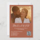 Apresentando nomes de estilo de assinatura, este convite de casamento elegante do terracotta pode ser personalizado com todas as suas informações especiais sobre o dia do casamento na frente e sua foto, detalhes do site do casamento e código QR no verso. Projetado por Thisnotme©