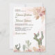 Incêndios para seus convidados com este elegante convite de casamento com lindas flores rosa-pinceladas e cactos com tipografia moderna. Basta adicionar os detalhes do seu evento neste modelo fácil de usar e enfeitar este cartão com a sua foto favorita para torná-lo um convite único.