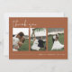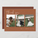 Este cartões de agradecimentos de casamento apresenta uma fonte escura e escrita à mão, 3 ranhuras para fotografias e um design moderno minimalista e uma combinação de cores boho terracotta, ferrugem e branca. Use estas modelos para editar todos os textos, fontes, cores de fonte e a cor de fundo para corresponder ao seu estilo de evento. Edite facilmente as fotos na frente para corresponder ao seu evento especial.