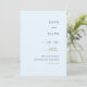 Um casamento clássico elegante e moderno salve a data com um molde fotográfico, com um galho desenhado à mão de bagas de inverno cortadas digitalmente com uma matiz dourada e um fundo azul de gelo. Uma escolha encantadora para um casamento no inverno, um casamento de Natal, um casamento de Ano Novo ou um casamento nos meses frios - novembro, dezembro, janeiro, fevereiro. Parte do convite para o inverno "Elegante Winter Ice Berries".