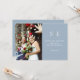 Este cartões de agradecimentos de casamento azul empoeirado minimalista pode ser personalizado com suas iniciais de monograma, duas fotos especiais de casamento e sua mensagem de obrigado especial. Projetado por Thisnotme©