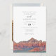 Este convite para o casamento apresenta uma pintura aquosa do lindo Sedona, linha do horizonte de Arizona e uma simples combinação de fontes modernas. Edite com facilidade o texto *maioria* para atender às suas necessidades de eventos. Mude a cor de fundo e adicione sua própria foto ao fundo, junto com o site do seu casamento, para um toque pessoal. Este convite de casamento é perfeito para o seu casamento ou evento no deserto da boêmia.