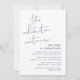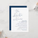 Este é o convite para a festa de casamento fuga, com design minimalista / minimalista de texto em Azul Naval (A Celebração Continua)