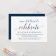 Belo Rótulo Azul Marinho Elegante, Anúncio de Casamento Furtivo, Convite (Agora é hora de celebrar). Isso é perfeito para o seu casamento e festa de celebração pós-casamento. Adicione seus detalhes na fonte / letra correspondente.