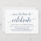 Lindo Script Azul Naval Elegante e Sofisticado, Anúncio de Casamento Fuga, Cartão de Convite (Agora é hora de celebrar). Isso é perfeito para o seu casamento e festa de celebração pós-casamento. Adicione seus detalhes na fonte / letra correspondente.