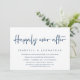 Convite de casamento fuga com tema azul naval em letra moderna (festa para sempre feliz). É perfeito para o seu jantar de casamento fuga casual à beira do lago, dança e festa.