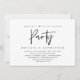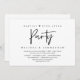 Cartão de convite de casamento com tema de Letra Preta Moderna, (Festa Feliz para Sempre). É perfeito para o seu reception de casamento / festa de celebração pós-casamento. Adicione seus detalhes na fonte / letra preta correspondente.