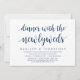 Convite de casamento fuga moderno em tema azul navy sofisticado, cartão de convite (Jantar Com os Recém-Casados). É perfeito para o seu casamento fuga casual jantar à beira do lago, dança e festa.