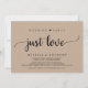 Linda festa de celebração de amor sem luxo, cartão de anúncio / convite de casamento fuga, em design rústico de kraft marrom de fazenda. Isso é perfeito para o seu casamento e festa de celebração pós-casamento. Adicione seus detalhes em fonte / letra correspondente.