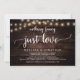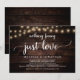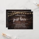 Linda festa de celebração de amor sem luxo, Anúncio de Casamento Fuga / Convite de casamento, em design de madeira rústica de fazenda, Luzes de Corda. Isto é perfeito para o seu casamento e festa de celebração pós-casamento. Adicione seus detalhes no tipo de letra correspondente.