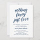 Este é o Cartão de Convite de Casamento Fugitivo com Caligrafia Moderna Simples Rústica Azul Naval (Nada de Suntuoso, apenas amor). Um cartão perfeito para convidar sua família querida e convidados para o anúncio do casamento e celebração da festa de recepção. Adicione os detalhes da sua celebração na fonte / letra correspondente.