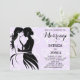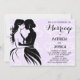 Este convite para o casamento de gay apresenta duas noivas legal em silhuetas emparelhadas com um roteiro elegante num fundo de corações lilás pálidas.