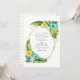 Turquesa exótica e convite floral para o casamento na praia de verão, amarelo, com abundantes verdes tropicais em uma estrutura geométrica de ouro personalizável para suas especificidades de evento. Ideal para qualquer tema ou casamento de jardim. O código QR no verso direciona para o seu local de casamento onde o pessoas pode aprender mais e rsvp.