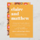 Adicione algumas vibrações retrógradas ao seu casamento com estes convites coloridos ranhosos com um padrão floral geométrico estético dos anos 70 em amarelo, rosa, laranja e castanho.