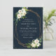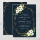Um design floreal branco de marfim moderno com uma estrutura geométrica com texto no meio. As lindas flores verdes e brancas são perfeitas para o seu casamento de verão. Você pode mudar o texto, o tamanho do texto, a cor e a fonte neste modelo de convite para casamento. A cor de fundo também pode ser alterada.