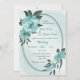 Convite de casamento único com flores azuis românticas e folhas verdes em uma bela estrutura geométrica oval. PARA MAIS PRODUTOS CORRESPONDENTES, clique na coleção acima ou entre em contato comigo.