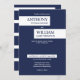 Convite Casamento Geométrico com Stripes Brancas Azuis do