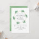 Trendy suculenta convite de casamento com moldura geométrica dourada e lavagem verde aquosa sage inversa.