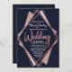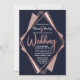 Elegante, chic e moderno com uma vibração retrorreflectora, esboços impressos em forma de diamante geométrico rosa de ouro em azul marinho, mauve, e recorte de diamante rosa esfarelado, convites para casamento. Este design clássico e sofisticado é perfeito para o casal de competição de tendências e na moda. Personalize com sua própria mensagem na frente, assim como um monograma personalizado inicial no verso. Todas as impressão de fotos.