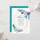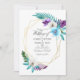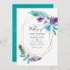 Folhas e orquídeas tropicais coloridas com cor d'água coloridas convite para casamento com moldura geométrica dourada e lavagem com cor d'água azul turquesa inversa. A foto no verso é opcional. Se você a remover, role para baixo até a parte inferior de "Personalizar este modelo" e clique em "Editar usando a ferramenta Design". Na Ferramenta Design, você pode editar, dimensionar, excluir ou mover qualquer texto ou elemento design.
