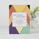 Este convite de casamento moderno é perfeito para o casal que quer fazer uma declaração na moda. O convite apresenta uma caligrafia retrorreflectora em negrito num retângulo branco com um fundo abstrato geométrico vibrante e ranhura. A combinação artística do velho e do novo dá a qualquer evento um toque convidativo e único. Quer você esteja planejando uma simples reunião ou uma grande celebração, este convite vai garantir que seus convidados saibam que é uma ocasião para se lembrar.