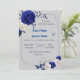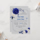 belo convite para casamento geométrico de flores azuis e brancas e cinzas