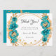 Convite Casamento Geométrico de Teal Dourado Peony Obrigad