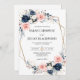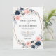 Traga um pouco de romance moderno para o seu grande dia com este convite de casamento floral azul e marinho. Rosas suaves e flores profundas de marinho são maravilhosamente organizadas em torno de uma elegante estrutura geométrica dourada, acrescentando uma sensação de na moda fresca. Esta design funciona perfeitamente para casamentos de jardim, cerimônias de vinhedos, ou qualquer celebração que misture os florais de eternos com uma borda moderna. Seus convidados adorarão receber um convite que se sinta clássico e contemporâneo, definindo o tom para seu dia inesquecível.