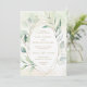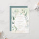 Convite moderno de casamento com folhas de eucalipto e verde em volta de uma falsa estrutura geométrica de ouro. Dentro são seus detalhes de evento em tom dourado, sobre uma lavagem a aquarela pastel e a parte traseira é uma sombra de verde macio. Esta elegante e rústica design é excelente para um casamento de temas botânicos no verão.