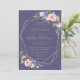 Este convite de casamento chic moderno apresenta um quadro geométrico dourado adornado por uma linda blush de aquarela e floral de lavanda. Projetado para combinar com a nossa coleção de casamento Delight. Personalize-o com seus detalhes de forma fácil e rápida, basta pressionar o botão personalizar para reorganizar e formatar o estilo e a colocação do texto. c) O Feliz Cat Studio