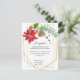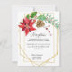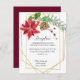 "Convite de Casamento Geométrico Dourado Floral da Burgundia de Natal." INSERIR recepção de casamento PARA SEUS CONVITES. O verso tem um padrão fino de faixa de aspecto brilhante em ouro e é mostrado aqui com uma cor de fundo arrojada profunda que você pode mudar. Pintada à mão, moderna aquarela Flórida de Natal com burgundy e poinsettia vermelha, bagas de inverno, verde-folhagem holly e folhagem com um terrário geométrico estilo dourado. Arte pintada por uma artista e designer internacionalmente licenciada, Audrey Jeanne Roberts, copyright.