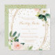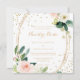 Este convite de casamento elegante e geométrico de verde e ouro em espanhol é perfeito para um casamento rústico. A design apresenta rosas brancos, cor-de-rosa e pincéis pintados à mão e um toque de verde, adoráveis quadros geométricos de ouro, inspiradora beleza artística.