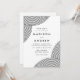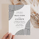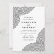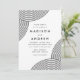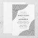 Convites modernos de casamento com linhas geométricas rodadas a preto nos cantos com fundo branco. Personalize os convites de casamento preto e branco adicionando seus nomes e detalhes de casamento. Os convites de casamento do boho moderno se invertem para mostrar um fundo branco.