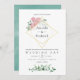 Trendy geométrico eucalipto verde e rosas cor-de-rosa pinceladas convite para casamento com moldura geométrica dourada e lavagem de cor d'água da menta inversa.