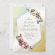 Um elegante ouro geométrico rústico, cor de água verde e azul com convite floral verde, rosa e burgundy. Apresentando uma design única que não se encontra em outro lugar que destaca um encanto rústico moderno.
