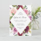 Um convite de casamento floral geométrico com seus detalhes dentro de forma diamante enfeitado com rosas pintados de cor d'água em ameixa, roxo, rosa e creme. A parte de trás é uma cor de ameixa profunda e pode ser alterada para qualquer cor desejada. Os tons profundos de roxo fazem este excelente de convite para um casamento no outono.