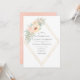Convite de casamento poligonal cor-de-rosa esfarelado com quadro geométrico de brilho dourado concebido para ser rápida e facilmente personalizado de acordo com as especificações do seu evento.